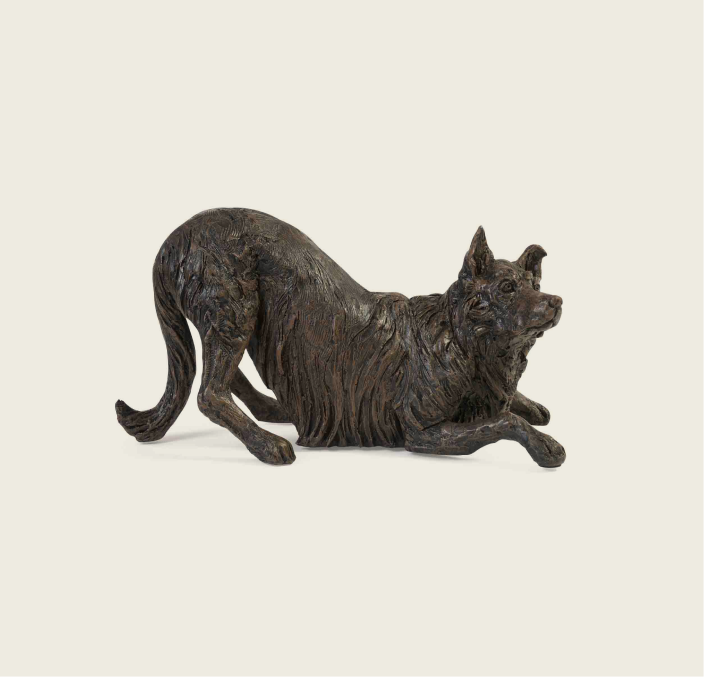 Honour the agility, alertness and joyful spirit of your Border Collie with this elegant figurine urn. Hand-painted in a bronze-effect finish, it features a hollow interior large enough to hold your pet’s full ashes and makes a meaningful memorial.