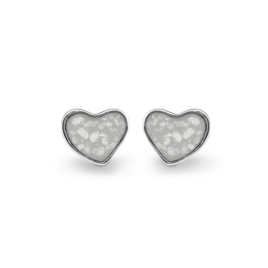 These Sterling Silver Cherish Memorial Earrings are in the form of a heart and are of a post earring style. The heart-shaped mount, post and rear butterfly clip are available in 925 Sterling silver with a Rhodium plating to prevent tarnishing and also 9k gold. The resin, in the chosen colour out of the twelve that are available, is gently mixed with a tiny amount of cremation ashes and carefully entered into the mount. Real diamond dust can be added to this mixture if added sparkle is desired.