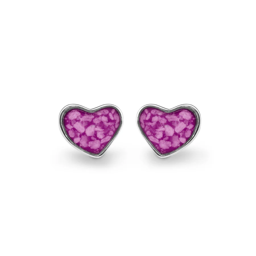 These Sterling Silver Cherish Memorial Earrings are in the form of a heart and are of a post earring style. The heart-shaped mount, post and rear butterfly clip are available in 925 Sterling silver with a Rhodium plating to prevent tarnishing and also 9k gold. The resin, in the chosen colour out of the twelve that are available, is gently mixed with a tiny amount of cremation ashes and carefully entered into the mount. Real diamond dust can be added to this mixture if added sparkle is desired.