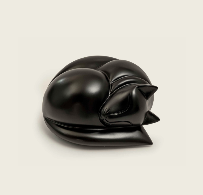 A beautifully hand-painted resin figurine urn in black or white finish, designed to hold the full ashes of your beloved cat. Compact yet dignified, this urn provides a restful memorial in a refined form.