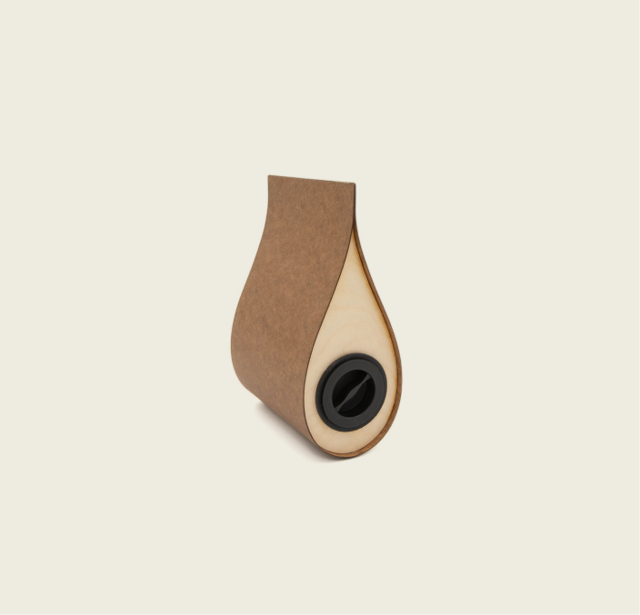 A sleek, contemporary teardrop-shaped urn crafted from FSC-sourced plywood and zero-formaldehyde composite—designed in-house by the maker to offer modern style coupled with functional ashes storage.